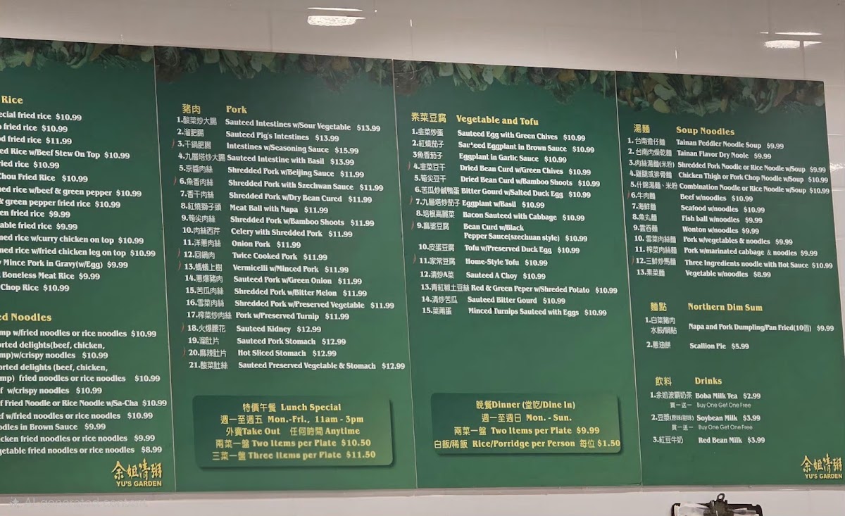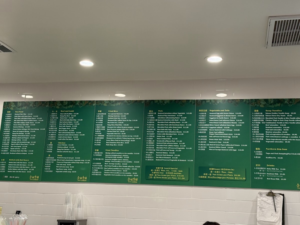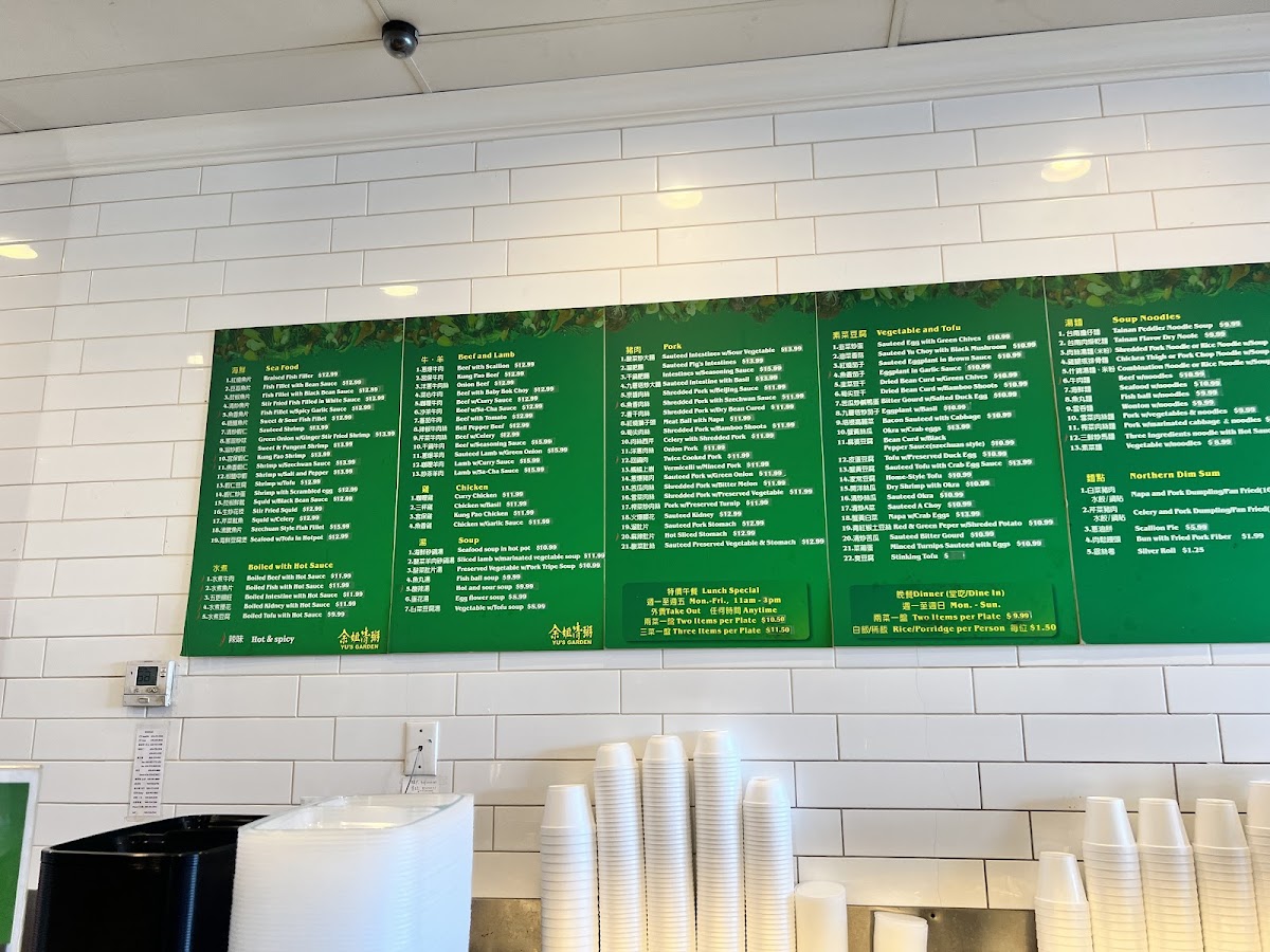 Yu's Garden Menu