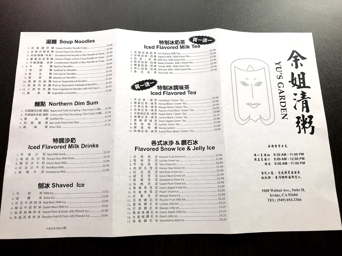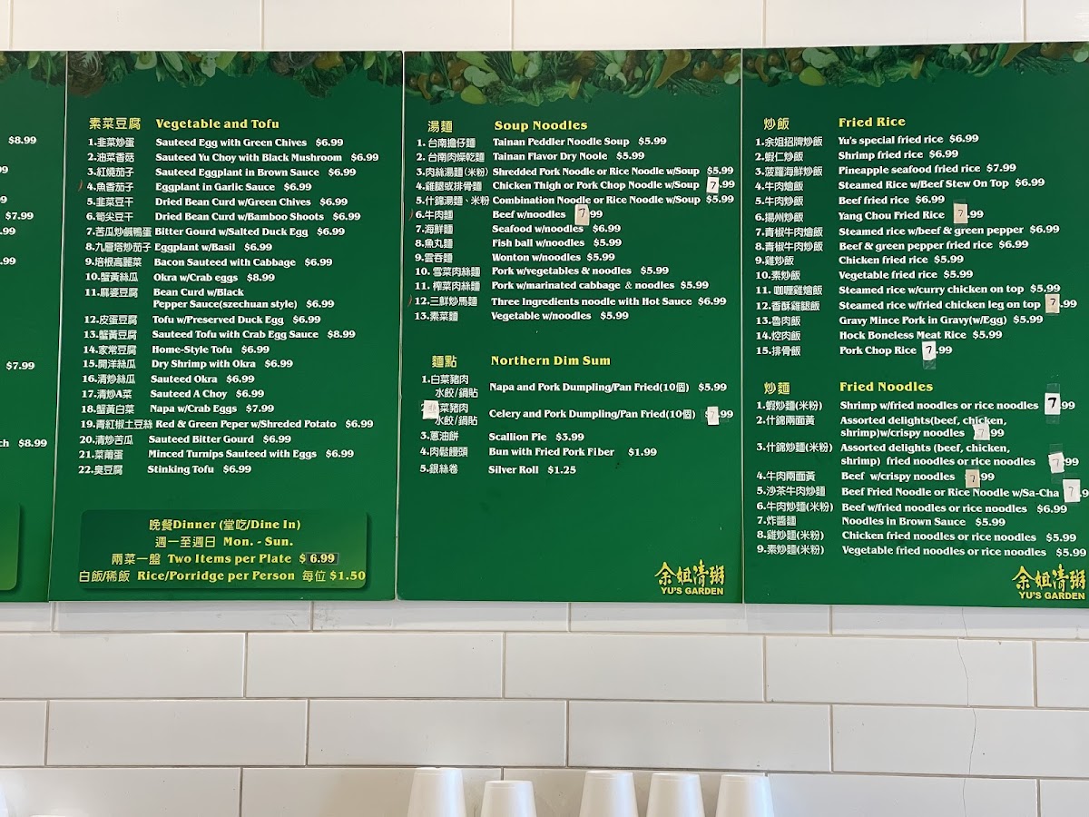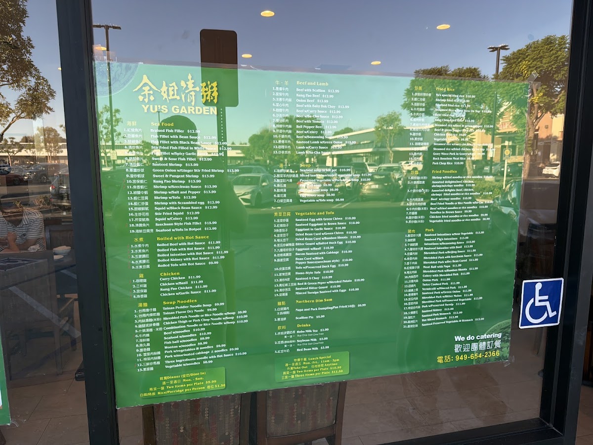 Yu's Garden Menu